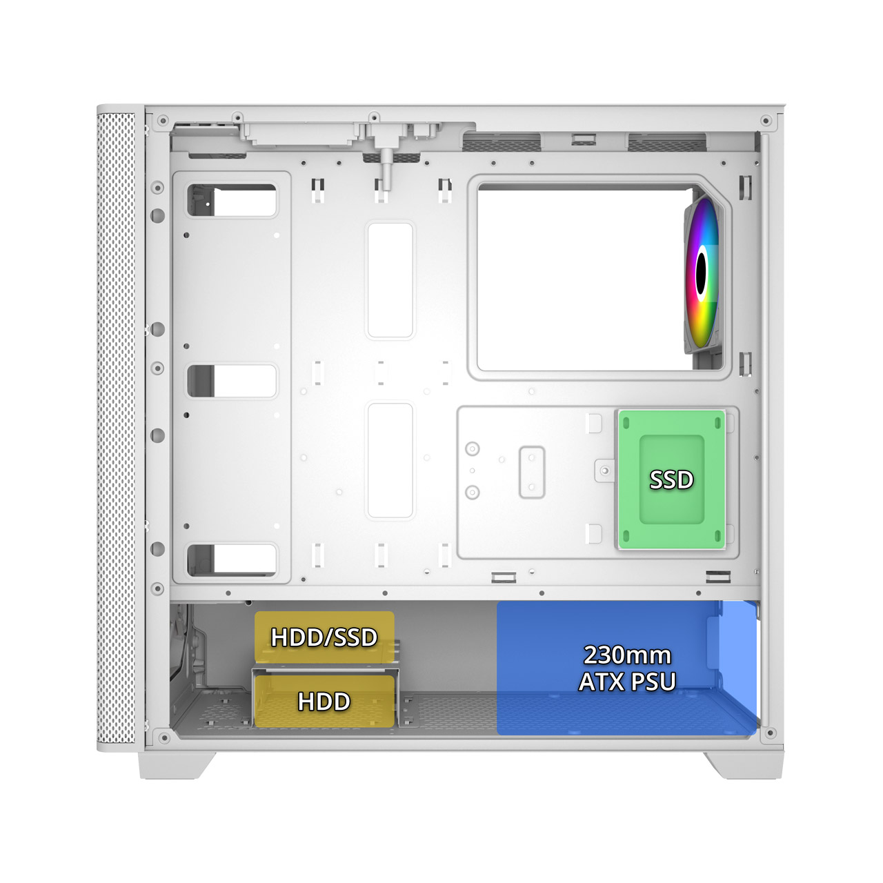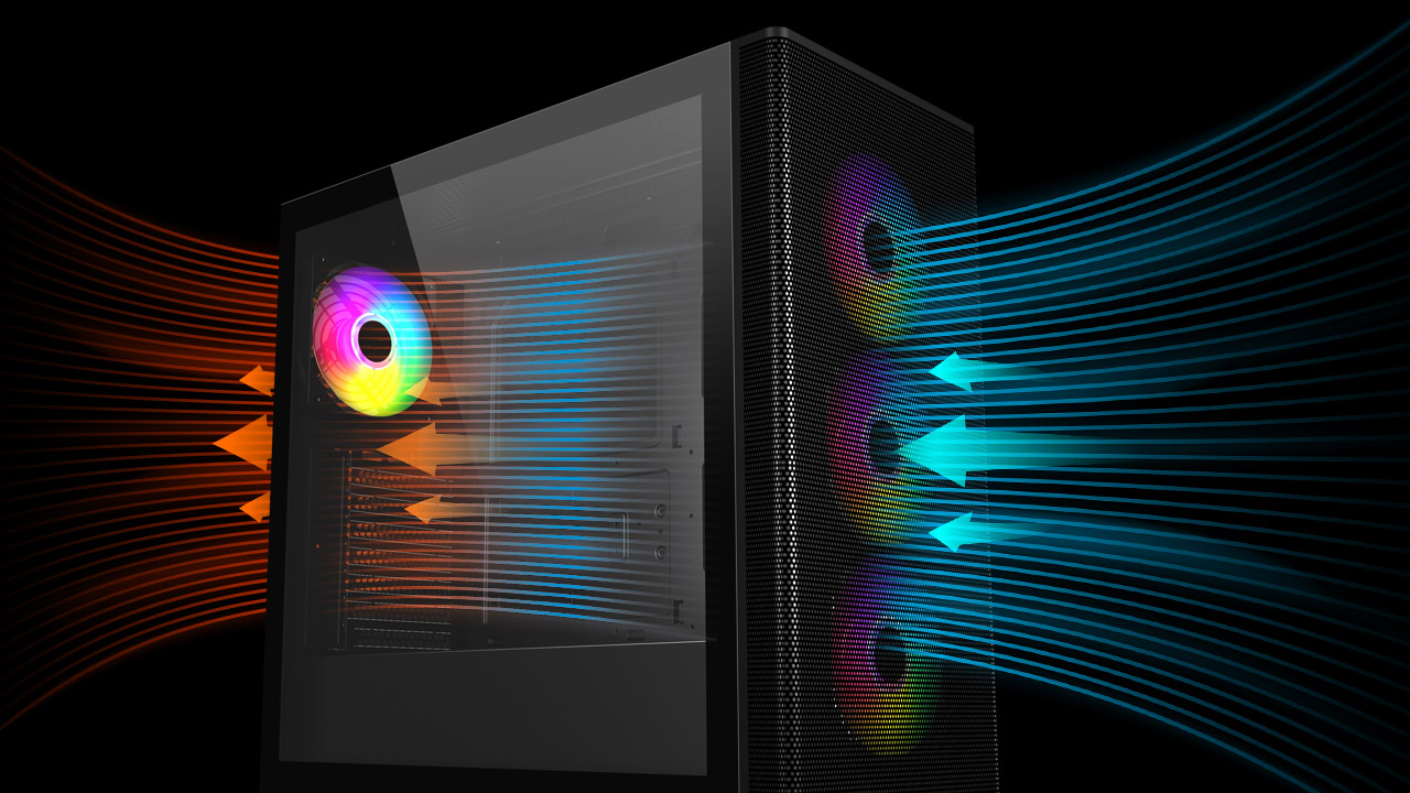 - 散熱升級有感:預裝四顆 ARGB 風扇,兼具效能與個人風格呈現,不僅帶來強勁散熱,更能演繹獨一無二的個人風格。