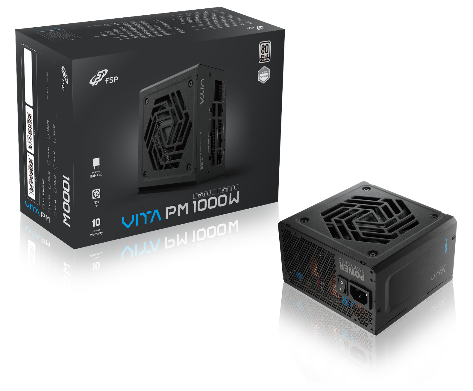 VITA PM全系列採MIT台灣精工製造,全漢 FSP 以多年電源技術與製造經驗,確保產品具備世界級的品質與可靠穩定的輸出表現。同時全系列享10年長效保固與2年快速換新服務,展現全漢對品質的承諾與信心,讓消費者能買得放心、用得長久!