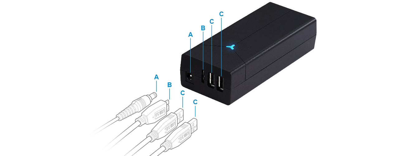 - Puissance de sortie réelle: 110 W (95W pour l’adaptateur et 15W pour les ports USB)