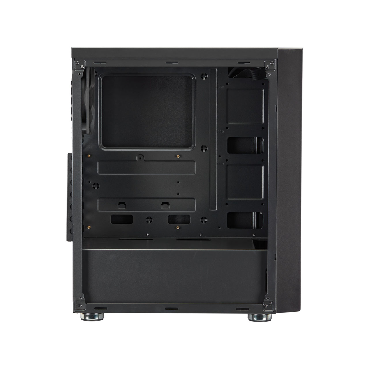 Abgesehen von seinem schlichten Look, ist das FSP CMT150 mit einem Acrylglas-Seitenteil ausgestattet, mit dem Sie die installierte Hardware Ihres Gaming-Rigs angemessen präsentieren können.Apart from its simple look, the FSP CMT150 is equipped with an acrylic window side panel that allows you to properly showcase your gaming rig‘s installed hardware.