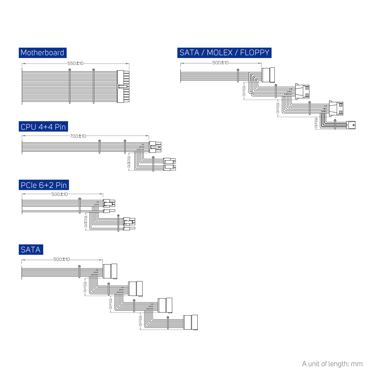 | MB 24 PIN | CPU 4+4 PIN | PCIe 6+2 PIN | SATA | MOLEX | FLOPPY | |