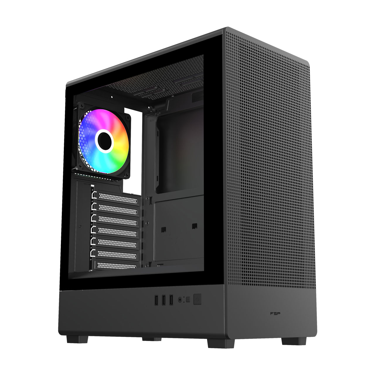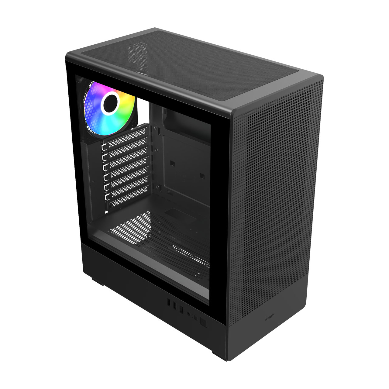 A sleek semi-glass design with ergonomically placed buttons and high-performance USB ports on the side delivers both elegance and practicality. It enhances desktop placement, ensures smooth operation, and provides a refined look that balances modern aesthetics with everyday usability, making your system stand out while remaining highly functional.