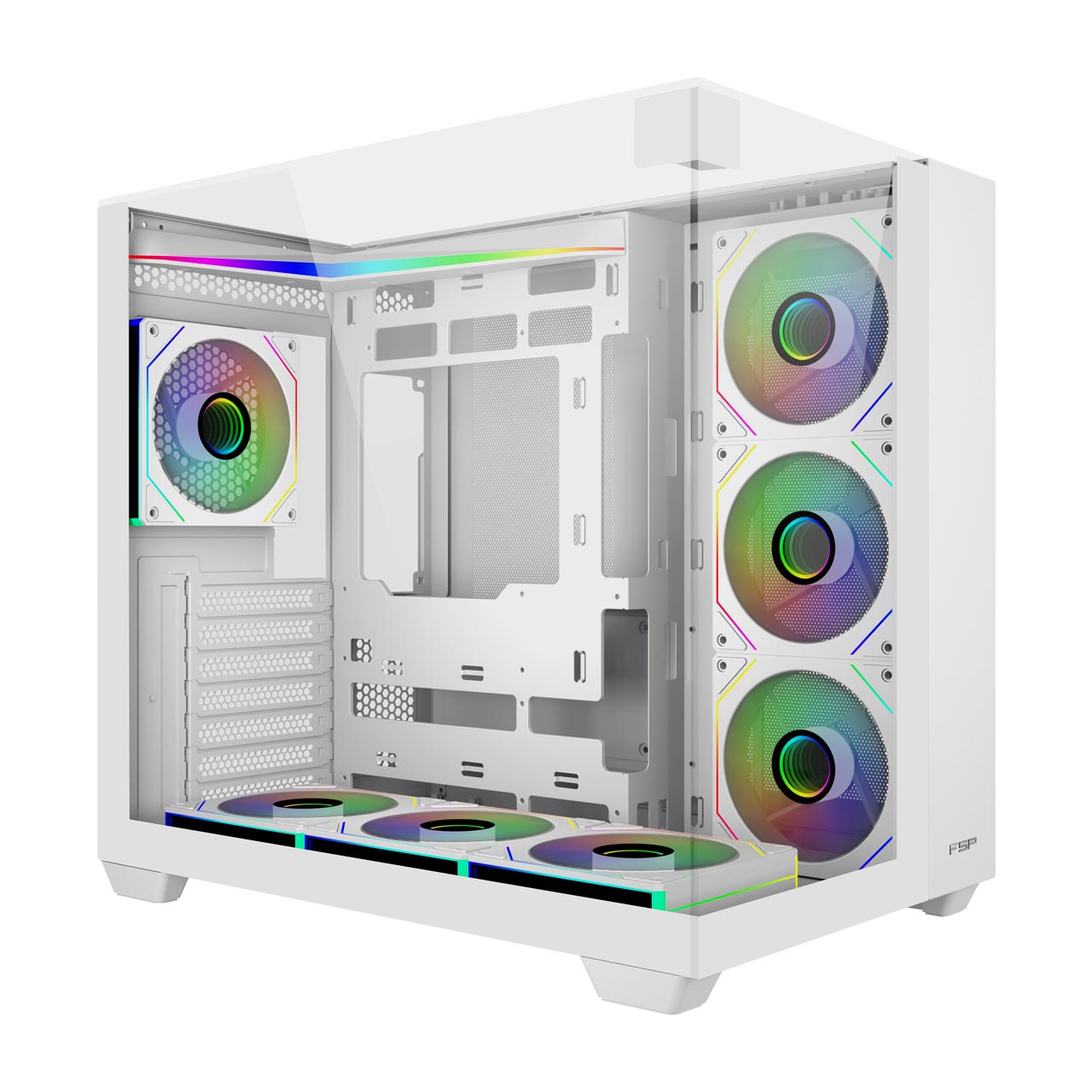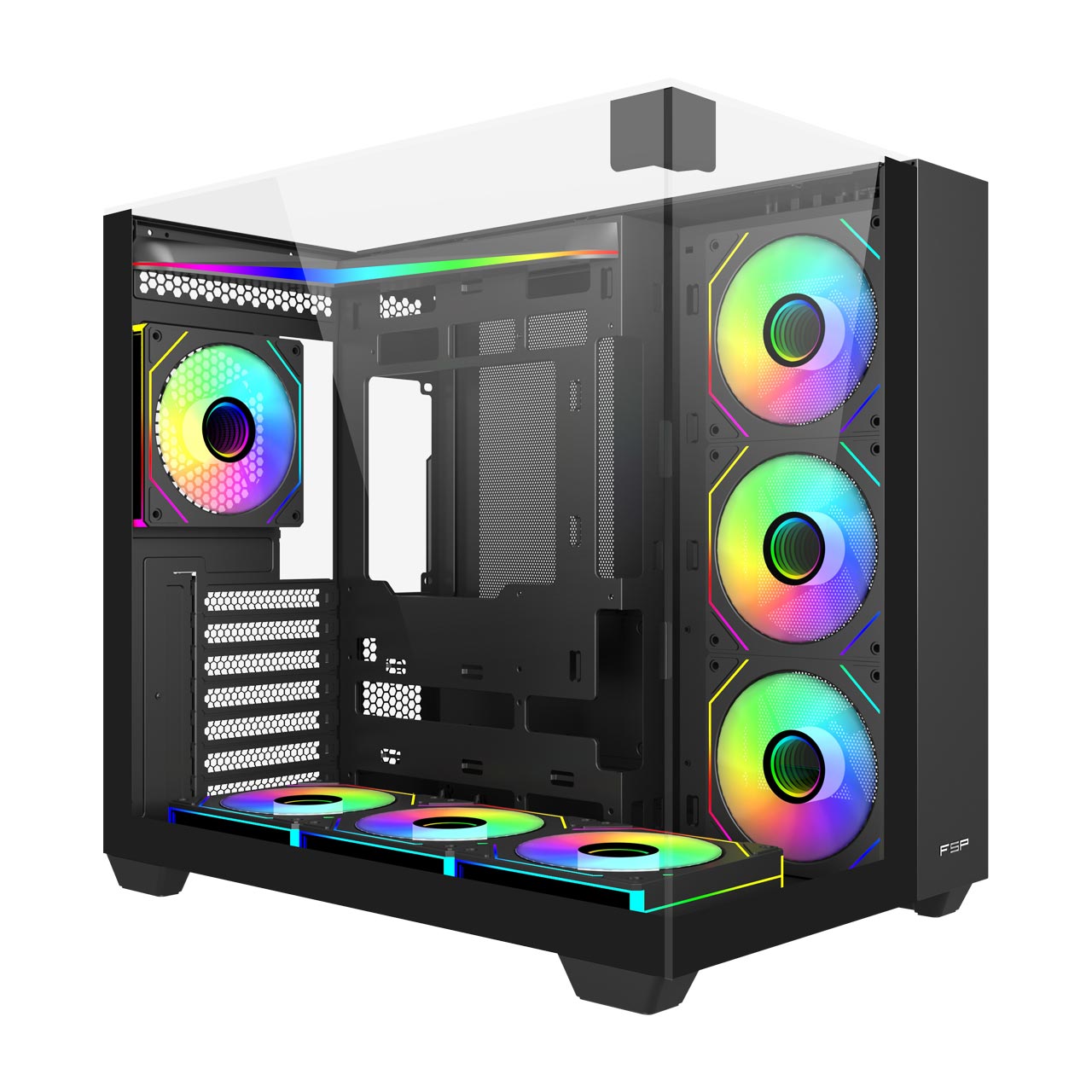 Comes with six 120mm reverse PWM ARGB fans on the side and bottom, plus one rear ARGB fan.