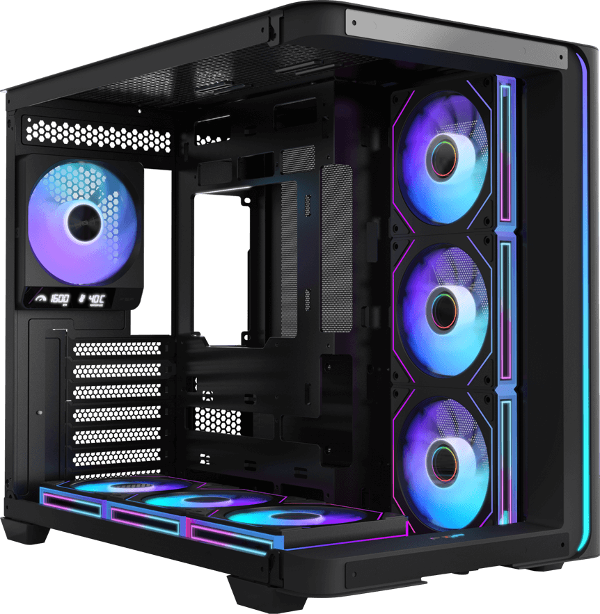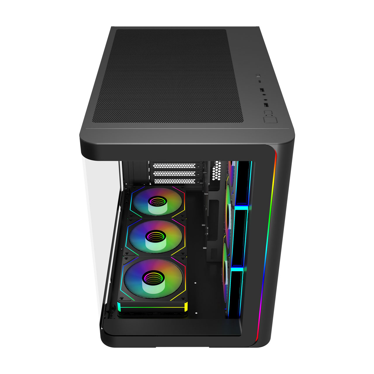The M580 PRO features a complete curved tempered glass panel, offering an panoramic view from front to side, delivering a seamless, perfect visual immersion.