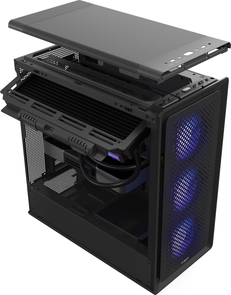 Enjoy hassle-free maintenance with tool-free side panels and a quick-release top cover. Whether upgrading components or cleaning your rig, access is fast and frustration-free.
