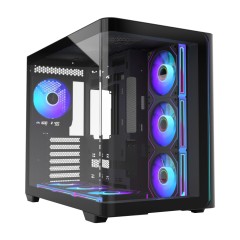 | 散熱系統 | 側:120mm 反向ARGB x 3 搭配控制器 下:120mm 反向ARGB x 3 後:120mm ZENFAN 數顯風扇 x 1(附風扇轉速及溫度螢幕) ***長按RGB按鈕以切換到同步模式。 |