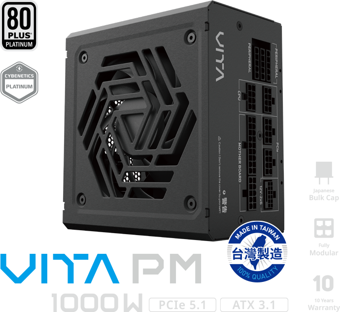 VITA PM 符合 ATX 3.1 與 PCIe Gen 5.1 的設計規範,確保能穩定應對高階硬體的功耗挑戰,讓未來升級也能無縫接軌!
